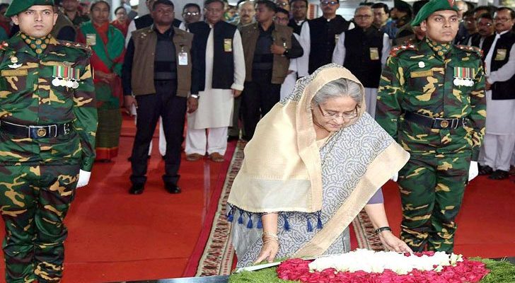 সোমবার সকাল ৭টায় প্রধানমন্ত্রী বঙ্গবন্ধুর প্রতিকৃতিতে পুষ্পস্তবক অর্পণ করেন ও মোনাজাতে অংশ নেন। এ সময় তার সঙ্গে উপস্থিত ছিলেন জাতির পিতার কনিষ্ঠ কন্যা শেখ রেহানা।