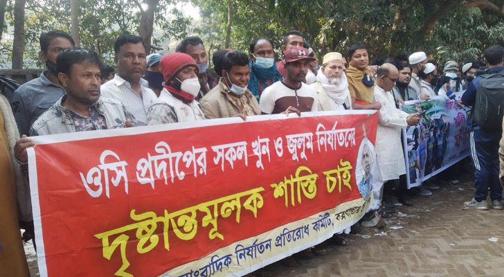 এ ছাড়া ওসি প্রদীপ তাকে ঢাকা থেকে আটক করে থানায় এনে চরম নির্যাতন এবং মিথ্যা মামলায় প্রায় এক বছর জেল খাটতে বাধ্য করে। ওসি প্রদীপসহ এ মামলার সব আসামির ফাঁসির দাবি করেন তিনি।