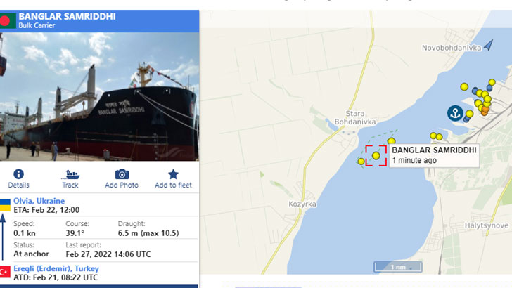 সংশ্লিষ্টরা জানান, চলমান যুদ্ধের মধ্যে ইউক্রেনে আটকা পড়েছেন বিএসসির জাহাজ ‘বাংলার সমৃদ্ধি’র ২৯ জন নাবিক। তাদের সবাই বাংলাদেশি। বর্তমানে ইউক্রেনের অলভিয়া বন্দরে আটকা পড়ে আছেন তারা।