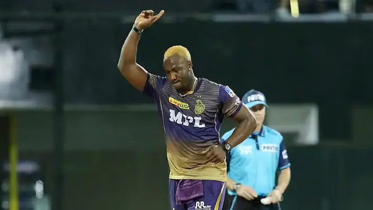 ২০তম ওভারের প্রথম, দ্বিতীয়, পঞ্চম ও শেষ বলে যথাক্রমে অভিনব মনোহর, লকি ফার্গুসন, রাহুল তেওয়াটিয়া ও যশ দয়ালকে সাজঘরে ফেরান রাসেল। দয়ালের ক্যাচটি রাসেল নিজেই ধরেন। বাকি তিনটি ক্যাচ ধরেন রিঙ্কু সিং।