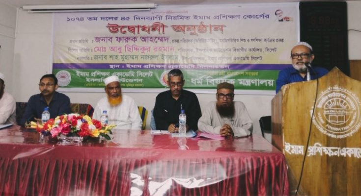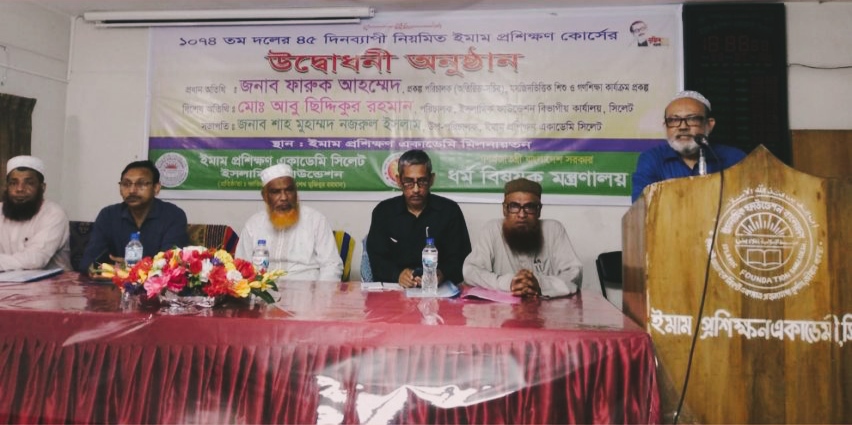 ইমাম প্রশিক্ষণ একাডেমি সিলেটের উপপরিচালক শাহ মুহাম্মদ নজরুল ইসলামের সভাপতিত্বে অনুষ্ঠানে বিশেষ অতিথির বক্তব্য দেন সিলেট সরকারি আলিয়া মাদরাসার অধ্যক্ষ প্রফেসর মুহাম্মদ মাহমুদুল হাসান, ইসলামিক ফাউন্ডেশনের পরিচালক (পিআরএল) ফরিদ উদ্দিন আহমদ ও ইসলামিক ফাউন্ডেশন সিলেট বিভাগীয় কার্যালয়ের পরিচালক আবু ছিদ্দিকুর রহমান।