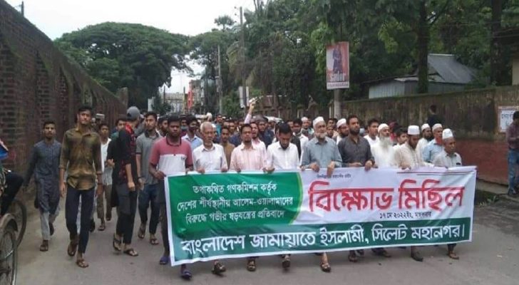 সিলেট মহানগর পুলিশের উপ কমিশনার (উত্তর) আজবাহার আলী শেখ সাংবাদিকদের জানান, জামায়াত ও শিবিরের নেতাকর্মীরা মিছিল থেকে পুলিশের ওপর হামলা চালায়। তাদের হামলায় কোতোয়ালি থানার ওসি ও বন্দরবাজার ফাঁড়ির ইনচার্জ আহত হয়েছেন। পরে দুইজন আটক করা হয়েছে।