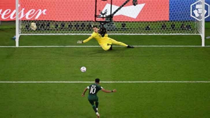 খেলার ৪৪ মিনিটে ডি বক্সের মধ্যে পোল্যান্ডের খেলোয়াড় ফাউল করায় পেনাল্টি পায় সৌদি। সেই পেনাল্টি মিস করেন সৌদির তারকা খেলোয়াড় সালিম আল-দাউসারি। পেনাল্টির সেই সুযোগ মিস হওয়ায় হতাশায় মূষড়ে পড়েন সৌদির ফুটবলাররা।