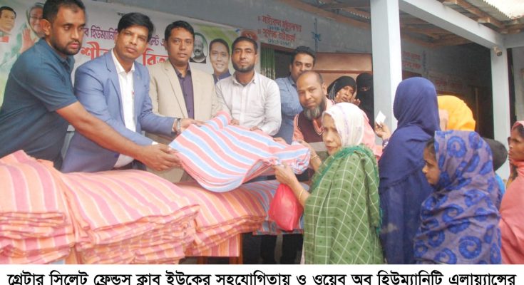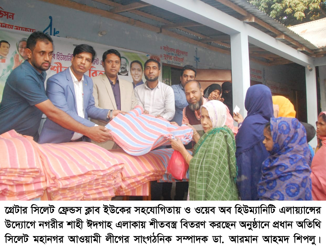 গ্রেটার সিলেট ফ্রেন্ডস ক্লাব ইউকের সহযোগিতায় ও ওয়েব অব হিউম্যানিটি এলায়্যান্সের উদ্যোগে মহান বিজয় দিবস উপলক্ষে আয়োজিত শীতবস্ত্র বিতরণ অনুষ্ঠানে প্রধান অতিথির বক্তব্যে সিলেট সিটি কর্পোরেশনের প্রথম মেয়র ও কেন্দ্রীয় আওয়ামী লীগ নেতা মরহুম বদর উদ্দিন আহমদ কামরানের ছেলে, সিলেট মহানগর আওয়ামী লীগের সাংগঠনিক সম্পাদক ডা. আরমান আহমদ শিপলু বলেছেন, ৩০ লাখ শহীদের রক্ত ও ২ লাখ নির্যাতিত মা বোনের সম্ভ্রমের বিনিময়ে আমরা স্বাধীনতা লাভ করেছি।