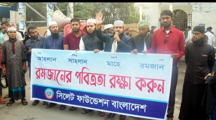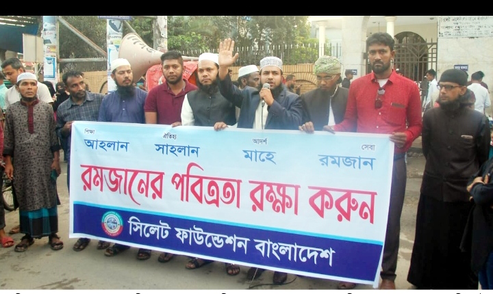 রমজানের পবিত্রতা রক্ষার দাবিতে সিলেট ফাউন্ডেশন বাংলাদেশ’র মানববন্ধন
