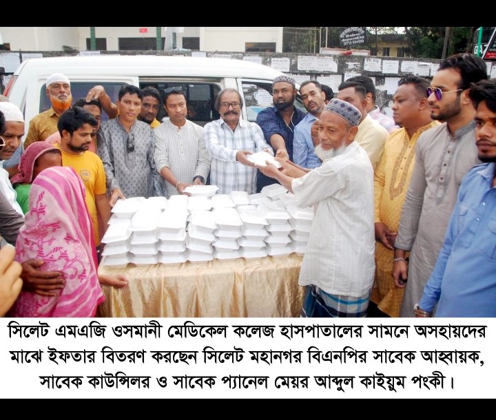 ওসমানী মেডিকেল এলাকায় আব্দুল কাইয়ুম জালালী পংকীর ইফতার বিতরণ