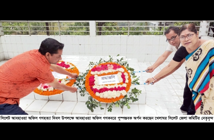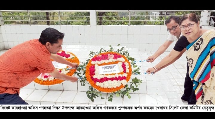 সিলেট আবহাওয়া অফিস গণহত্যা দিবস উপলক্ষে (৫ মার্চ) বুধবার সকাল ১১টায় আবহাওয়া অফিস গণকবরে পুষ্পস্তবক অর্পন করা হয়েছে। সিলেট আবহাওয়া অফিসের কর্মকর্তাবৃন্দের পক্ষ থেকে প্রথম পুষ্পস্তবক অর্পণ করা হয়।