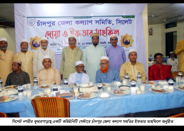 চাঁদপুর জেলা কল্যাণ সমতির ইফতার মাহফিল ও আলোচনা সভা অনুষ্ঠিত হয়েছে। গতকাল সিলেট নগরীর কুমারপাড়াস্থ মালঞ্চ কমিউনিটি সেন্টারে এ আলোচনা সভা ও ইফতার মাহফিল অনুষ্ঠিত হয়। অনুষ্ঠিত ইফতার মাহফিলে চাঁদপুর জেলা কল্যাণ সমিতির সভাপতি সিলেট কৃষি বিশ^বিদ্যালয়ের অতিরিক্ত পরীক্ষা নিয়ন্ত্রক গাজী মোহাম্মদ জহিরুল ইসলামের সভাপতিত্বে ও সাধারণ সম্পাদক বিশিষ্ট ব্যবসায়ী মো. মহসিন ভূইয়ার সঞ্চালনায় প্রধান অতিথির বক্তব্য রাখেন সিলেট ইন্টারন্যাশনাল ইউনিভার্সিটির ভাইস চ্যান্সেলর প্রফেসর ড. মো. শহীদ উল্লাহ তালুকদার। তিনি বলেন, পবিত্র মাহে রমজানের শিক্ষা সমাজের সব মানুষের কল্যাণে ও সমাজ বিনির্মাণে ভূমিকা রাখে।