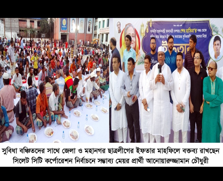 সিলেট জেলা ও মহানগর ছাত্রলীগের আয়োজনে এমনই একটি ব্যতিক্রম ই্ফতার মাহফিল দেখলো সিলেটবাসী। যেখানে সুবিধাবঞ্চিত মানুষদের সাথে এক কাতারে বসে ইফতার করেছেন আওয়ামীলীগের শীর্ষ স্থানীয় নেতৃবৃন্দ। যা দেখে প্রসংশায় ভাসেন জেলা ও মহানগর ছাত্রলীগের নেতাকর্মীরা।