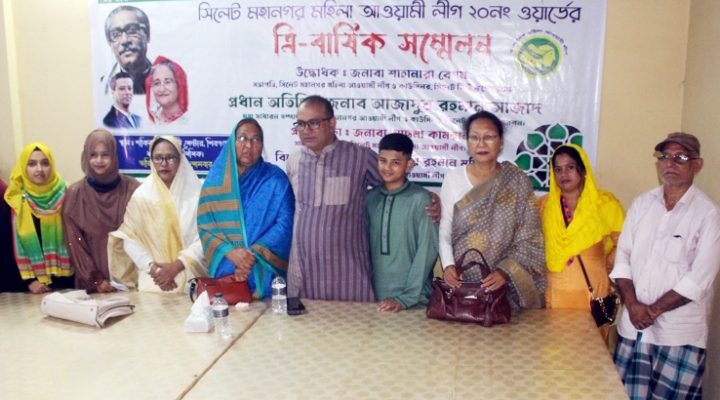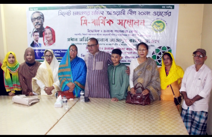 সিলেট মহানগর মহিলা আওয়ামী লীগের সভাপতি ও কাউন্সিলর শাহানার বেগমের সভাপতিত্বে ও ১৯, ২০ ও ২১ ওয়ার্ডের মহিলা কাউন্সিলর পদপ্রার্থী নার্গিস সুলতানা রুমির পরিচালনায় প্রধান বক্তার বক্তব্য রাখেন মহানগর মহিলা আওয়ামী লীগের সাধারণ সম্পাদক আছমা কামরান। বিশেষ অতিথির বক্তব্য রাখেন ২০নং ওয়ার্ড আওয়ামী লীগের ভারপ্রাপ্ত সভাপতি মুহিবুর রহমান মুহিব, ১৯, ২০ ও ২১ ওয়ার্ডের মহিলা কাউন্সিলর নাজনিন আক্তার কনি। ত্রি-বার্ষিক সম্মলনের আয়োজনে সার্বিক সহযোগিতা করেন “আমরা মুক্তিযোদ্ধার সন্তান” সিলেট মহানগর কমিটির সভাপতি দেওয়ান মুরাদ হাসান। বিজ্ঞপ্তি