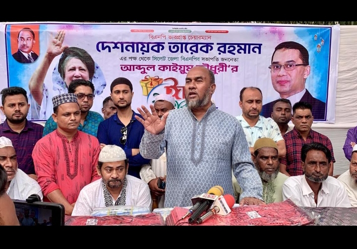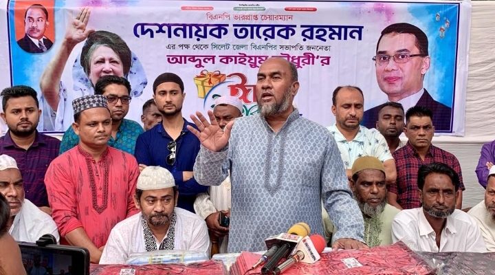 শুক্রবার বিকেলে সিলেটের ফেঞ্চুগঞ্জ উপজেলার নুরপুরে বিকাল ৪ ঘটিকায় বিএনপির ভারপ্রাপ্ত চেয়ারম্যান দেশনায়ক তারেক রহমানের পক্ষ থেকে তার নিজস্ব উদ্যোগে সুবিধাবঞ্চিত মানুষদের মাঝে ঈদ উপহার বিতরণকালে তিনি এসব কথা বলেন।