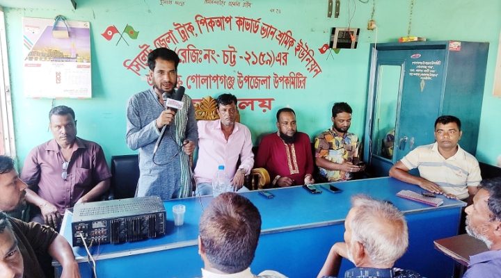 সিলেট জেলা ট্রাক-পিকআপ-কাভার্ডভ্যান শ্রমিক ইউনিয়ন রেজি নং ২১৫৯ এর অন্তর্ভূক্ত গোলাপগঞ্জ উপ-কমিটির সভাপতি বদরুল ইসলামের সভাপতিত্বে ও সহ সভাপতি মো. আইন উদ্দিনের পরিচালনায় আলোচনা সভায় প্রধান অতিথির বক্তব্য রাখেন, সিলেট জেলা ট্রাক-পিকআপ-কাভার্ডভ্যান শ্রমিক ইউনিয়ন রেজি নং ২১৫৯ এর প্রচার সম্পাদক মো. সামাদ রহমান, বিশেষ অতিথির বক্তব্য রাখেন, জেলা কমিটির সদস্য আলী আহমদ আলী।
