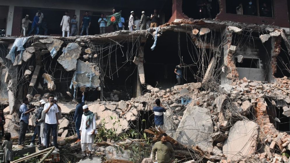 বুধবার নির্ধারিত সময় রাত ৯টায় হাসিনার ভাষণের আগেই তার ধানমন্ডি ৩২ নম্বরের বাড়িতে জড়ো হতে থাকেন তার শাসন আমলে নিপীড়নের শিকার হওয়া ছাত্র-জনতা। রাত ৮টার দিকে বিক্ষুব্ধ জনতা বাড়ির প্রধান ফটক ভেঙে ভেতরে প্রবেশ করে। এরপর ভাঙতে শুরু করে বাড়ি। একটা সময় আগুন ধরিয়ে পুড়িয়ে দেওয়া হয় বাড়ি। এরপর বুলডোজার মেশিন দিয়ে গুঁড়িয়ে দেওয়া শুরু হয়। শুধু এই বাড়িটিই নয়। শেখ মুজিব ও তার পরিবারের সদস্যদের বাড়ি ও ম্যুরাল ভেঙে দেওয়া হয়েছে বাংলাদেশের প্রায় সব জায়গাতেই। যা বেশ গুরুত্ব সহকারে প্রচার করেছে অন্তর্জাতিক মিডিয়াগুলো।