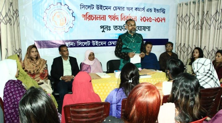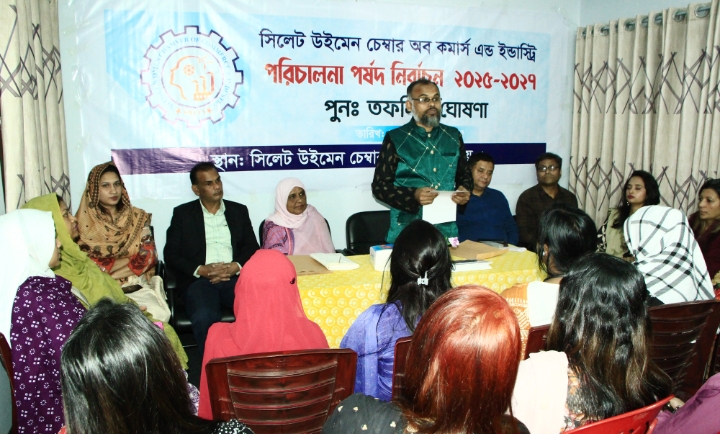 সিলেট উইমেন চেম্বার অব কমার্স এন্ড ইন্ডাষ্ট্রির পরিচালনা পরিষদের ২০২৫-২০২৭ সাল মেয়াদী পুনঃ নির্বাচনী তফসিল ঘোষণা করা হয়েছে।
