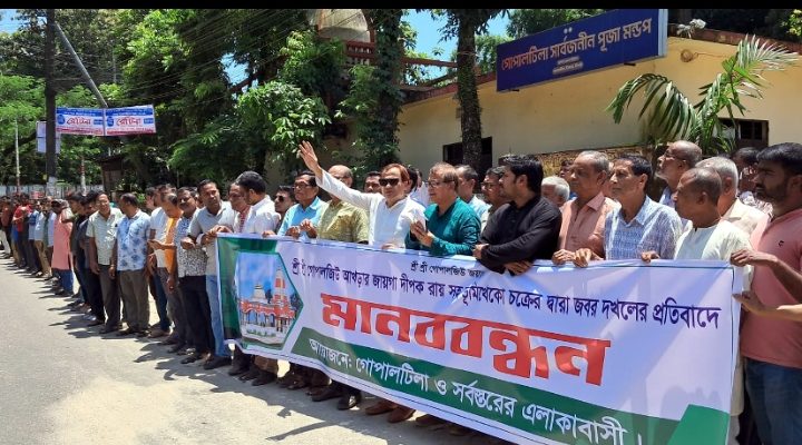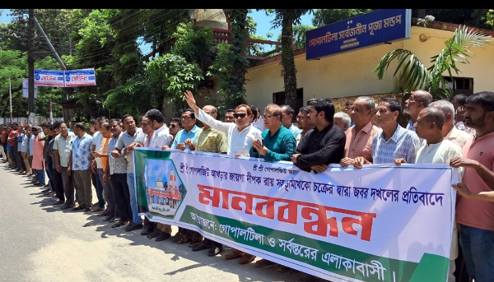 গোপালজিউ আখড়ার দেবত্ব সম্পত্তি দখলের প্রতিবাদে সাধারণ সভা ও মানববন্ধন কর্মসূচি