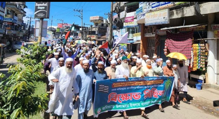 ঢাকায় জাতিসংঘ মানবাধিকার কমিশনের অফিস বন্ধের দাবিতে বিয়ানীবাজারে জমিয়তের বিক্ষোভ মিছিল