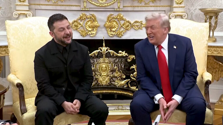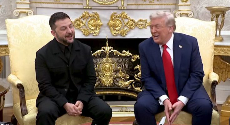 সিলেট নিউজ টাইমস্ ডেস্ক : অবশেষে প্রতিজ্ঞা ভেঙে স্যুট পরেই হোয়াইট হাউসে গেলেন ইউক্রেনের প্রেসিডেন্ট ভোলদেমির জেলেনস্কি। মার্কিন প্রেসিডেন্টের সঙ্গে বৈঠকে এবার কালো মিলিটারি স্টাইল স্যুটে দেখা মিললো তার। তবে স্যুটের সাথে টাই পরেননি তিনি।