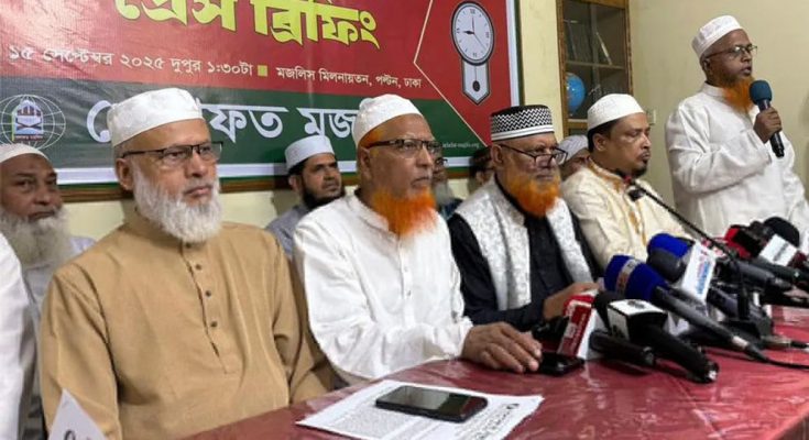সিলেট নিউজ টাইমস্ ডেস্ক : জুলাই সনদের ভিত্তিতে আগামী জাতীয় সংসদ নির্বাচন এবং নির্বাচনে পিআর পদ্ধতি (আনুপাতিক প্রতিনিধিত্ব) বাস্তবায়ন, আওয়ামী দোসরদের সকল রাজনৈতিক কর্মকাণ্ড নিষিদ্ধসহ ৬ দফা দাবিতে তিনদিনের বিক্ষোভ মিছিল কর্মসূচি ঘোষণা করেন খেলাফত মজলিস।