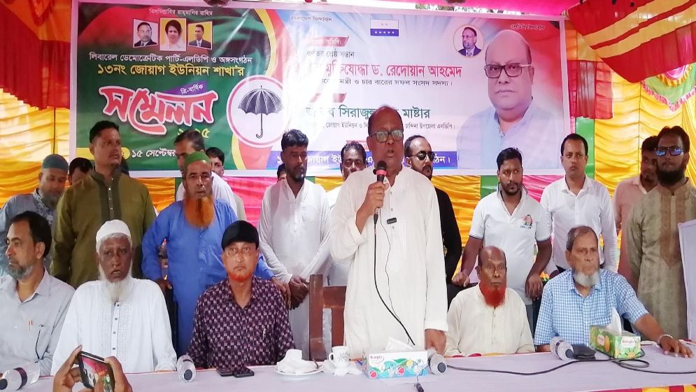 কুমিল্লার চান্দিনা উপজেলার জোয়াগ ইউনিয়নের ধেরেরা উচ্চ বিদ্যালয় মাঠে সোমবার (১৫ সেপ্টেম্বর) বিকালে ইউনিয়ন এলডিপির ত্রিবার্ষিক সম্মেলনে প্রধান অতিথির বক্তৃতায় তিনি এসব কথা বলেন।