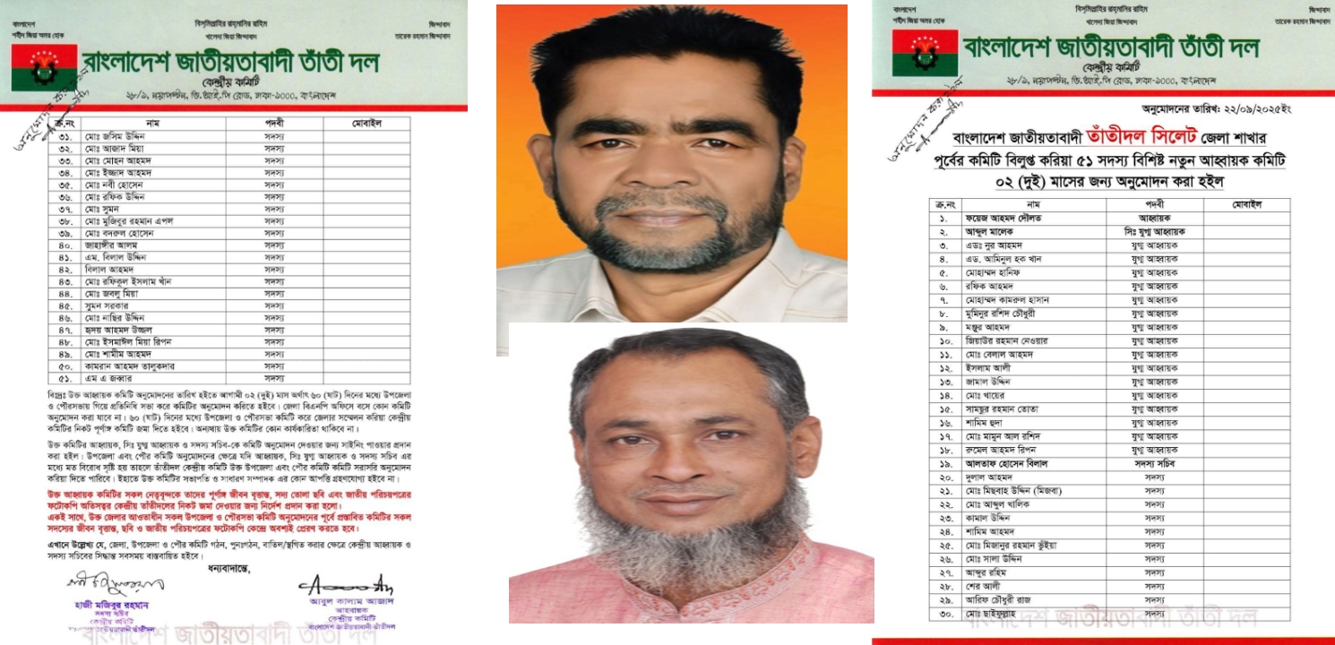 তাঁতীদল সিলেট জেলার আহবায়ক কমিটি গঠন দৌলত আহবায়ক, বিলাল সদস্য সচিব