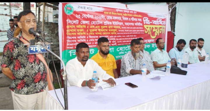 মঙ্গলবার (২৩ সেপ্টেম্বর) বিকেল ৩টায় নগরীর তালতলাস্থ নিজস্ব কার্যালয়ে সিলেট জেলা হোটেল শ্রমিক ইউনিয়ন (রেজি: নং চট্ট- ১৯৩৩) এর আওতাধীন সিলেট মহানগর কমিটির ত্রি-বার্ষিক সম্মেলনে প্রধান অতিথির বক্তব্যে তিনি উপরোক্ত কথাগুলো বলেন।