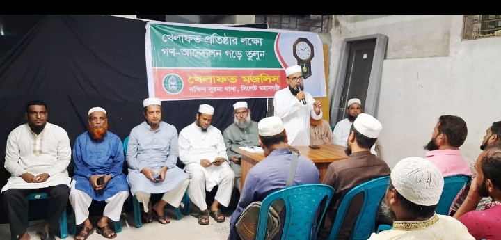 খেলাফত মজলিস সিলেট মহানগরীর দক্ষিণ সুরমা থানা শাখার দায়িত্বশীল ও কর্মী সমাবেশে প্রধান অতিথির বক্তব্যে তিনি উপরোক্ত কথা গুলো বলেন। থানা সভাপতি মাওলানা নাজিম উদ্দিনের সভাপতিত্বে আজ ৩০ সেপ্টেম্বর ২০২৫ মঙ্গলবার রাত ৯টায় টার্মিনাল রোডস্থ আহমদ কমপ্লেক্সে অনুষ্ঠিত কর্মী সমাবেশে বিশেষ অতিথির বক্তব্য রাখেন মহানগর সহসভাপতি মাওলানা শাহ আশিকুর রহমান, মাওলানা শামসুদ্দিন মুহাম্মদ ইলয়াস, মাওলানা ইমদাদুল হক নোমানী, সাধারন সম্পাদক হাফিজ মাওলানা জাবেদুল ইসলাম চৌধুরীর, ইসলামী যুব মজলিস সিলেট মহানগরীর সাংগঠনিক সম্পাদক মোস্তফা আহমদ সোহান।