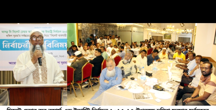 আসন্ন দি সিলেট চেম্বার অব কমার্স এন্ড ইন্ডাস্ট্রি নির্বাচন ২০২৫-২৭ উপলক্ষে দক্ষিণ সুরমার সর্বস্তরের ব্যবসায়ীদের নিয়ে “সিলেট ব্যবসায়ী ফোরাম” এর এক নির্বাচনী মতবিনিময় সভা অনুষ্ঠিত হয়েছে। বৃহস্পতিবার (১৬ অক্টোবর) রাতে নগরীর নাইওরপুলস্থ একটি অভিজাত হোটেলের হলরুমে দক্ষিণ সুরমার ব্যবসায়ীদের উদ্যোগে এই মতবিনিময় সভার আয়োজন করা হয়।