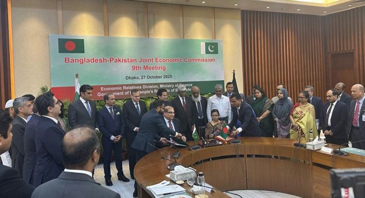 অর্থনীতি ডেস্ক: দীর্ঘ ২০ বছর পর অনুষ্ঠিত হলো বাংলাদেশ-পাকিস্তান যৌথ অর্থনৈতিক কমিশনের বৈঠক। সোমবার (২৭ অক্টোবর) রাজধানীর শেরেবাংলা নগরের এনইসি সম্মেলন কক্ষে এ বৈঠক অনুষ্ঠিত হয়।