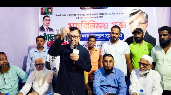 রবিবার (২ নভেম্বর) বন্দর বাজার সিলেট জেলা ও মহানগর সংবাদপত্র হকার্স সমবায় সমিতি নেতৃবৃন্দের সাথে এ মতবিনিময় করেন তিনি।