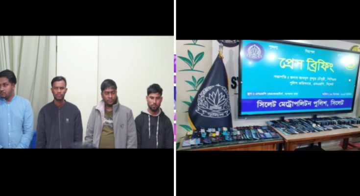 গত ১৮/১২/২০২৫খ্রিঃ মহানগর গোয়েন্দা পুলিশ দক্ষিণ সুরমা থানাধীন মোমিনখলা সাকিনস্থ তানভীরের বাসায় অভিযান পরিচালনা করে মোঃ সুজ্জাত (২৭), পিতা-সোলেমান মিয়া, মাতা-রোকসানা বেগম, সাং-চাইরগ্রাম, পোঃ-ঢাকি, থানা-মিঠামইন, জেলা-কিশোরগঞ্জ, বর্তমান ঠিকানা-মমিনখোলা তানভীরের বাসা, থানা-দক্ষিণ সুরমা, জেলা-সিলেট এর হেফাজত হতে ৩৮টি চোরাই-বৈধ কাগজপত্র বিহীন মোবাইল ফোন উদ্ধার করেন ও মোঃ সুজ্জাত (২৭) ‘কে আটক করেন।