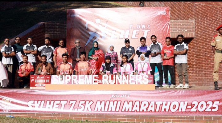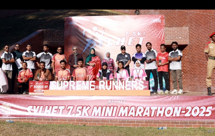 খেলাধুলা ডেস্ক : সিলেটের রানিং কমিউনিটি সুপ্রিম রানার্সের আয়োজনে ৫ শতাধিক দৌড়বিদের অংশগ্রহণে সাড়ে ৭ কিলোমিটার মিনি ম্যারাথন অনুষ্ঠিত হয়েছে। শুক্রবার (১৯ ডিসেম্বর) সকালে নগরীর কেন্দ্রীয় শহিদ মিনার থেকে এ ম্যারাথনটি শুরু হয়। ম্যারাথন শেষে সবাইকে আনুষ্ঠানিক মেডেল উপহার দেন সুপ্রিম রানার্সের পৃষ্ঠপোষকরা।