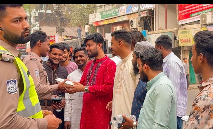 নগরীতে ট্রাফিক পুলিশদের মধ্যে মদন মোহন কলেজ ছাত্রদলের ইফতার বিতরণ