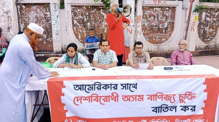 কমিউনিস্ট পার্টি সিলেট জেলা কমিটির গণস্বাক্ষর কর্মসূচি যুক্তরাষ্ট্রের সাথে ‘অসম বাণিজ্য চুক্তি’ বাতিলের দাবি