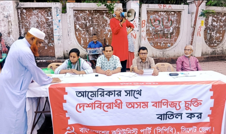 যুক্তরাষ্ট্রের সাথে বাংলাদেশের স্বাক্ষরিত ‘অসম বাণিজ্য চুক্তি’ বাতিলের দাবিতে সিলেটে গণস্বাক্ষর কর্মসূচি পালন করেছে বাংলাদেশের কমিউনিস্ট পার্টি (সিপিবি)।