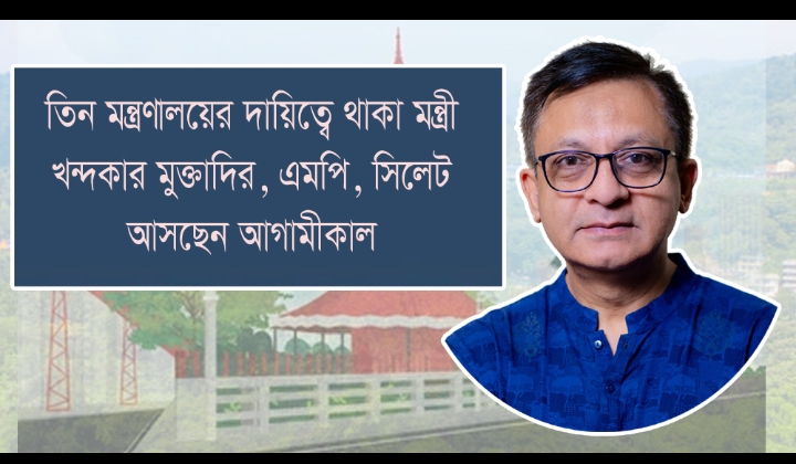 আগামীকাল শুক্রবার (২৪ এপ্রিল) এক দিনের রাষ্ট্রীয় সফরে সিলেট আসছেন গণপ্রজাতন্ত্রী বাংলাদেশ সরকারের বাণিজ্য, শিল্প, বস্ত্র ও পাট মন্ত্রী খন্দকার আব্দুল মুক্তাদির, এমপি। আজ বৃহস্পতিবার (২৩ এপ্রিল) মন্ত্রণালয় থেকে প্রকাশিত এক সরকারি সফরসূচিতে এই তথ্য জানানো হয়েছে।