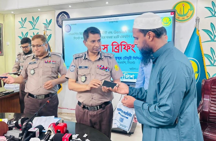 অদ্য ৩০/০৪/২০২৬খ্রি. বিকাল ১৬.০০ ঘটিকায় এসএমপি হেডকোয়ার্টার্স সম্মেলন কক্ষে মান্যবর পুলিশ কমিশনার জনাব আবদুল কুদ্দুছ চৌধুরী পিপিএম মহোদয়ের সভাপতিত্বে এসএমপি‘র ডিবি-সাইবার ক্রাইম ইউনিট এবং GenieA Team এর বিশেষ প্রচেষ্টায় হারিয়ে যাওয়া ৯১টি মোবাইল ফোন উদ্ধার ও প্রকৃত মালিকদের নিকট হস্তান্তর সংক্রান্তে প্রেস ব্রিফিং অনুষ্ঠিত হয়।